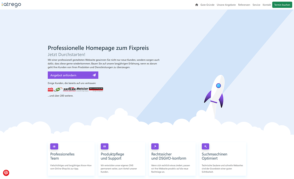 Mit unserer Websiteflatrate erhalten Sie Ihre Homepage zu einem monatlichen Paketpreis. Ohne zusätzliche Kosten für Layout, Design & Programmierung.